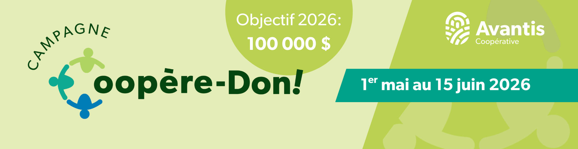 Avantis Coopérative lance pour la 5e année sa campagne philanthropique Coopère-Don, du 1er mai au 15 juin 2026! Notre objectif : soutenir une cause des plus importantes aux yeux de notre coopérative, soit la santé physique et mentale de nos communautés, tout comme celle de nos producteurs agricoles et de leur famille.